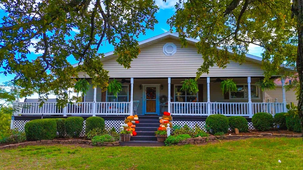 The Lookout House has classic Halloween style decor, and The Hideaway house has traditional autumn harvest style decor. Mums and pumpkins adorn the entire property. The perfect place to have getaway and enjoy the magic of the fall foliage in the Ozarks.